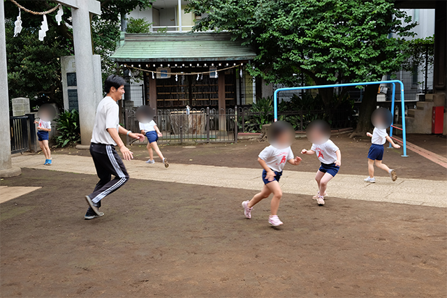 子どもたちのやりたいこと、好きなこと、得意なことに出会えるよう、様々な経験をする中で初めはできないことでも励まされ、応援してもらうことで頑張る心を育みます。また、やり遂げることで達成感が得られ大きな自信につながります。集団生活の中であそびや活動を通し、友だちを思いやる心、植物や虫に触れ、命を大切にする心が育ちます。